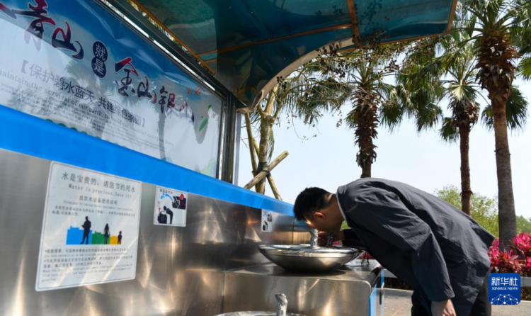 3月25日,参会人员在博鳌零碳示范区饮用常温直饮水。