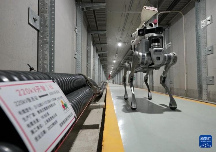 3月26日,一台四足巡检机器人在雄安新区雄东—昝西220千伏线路工程隧道进行巡检。