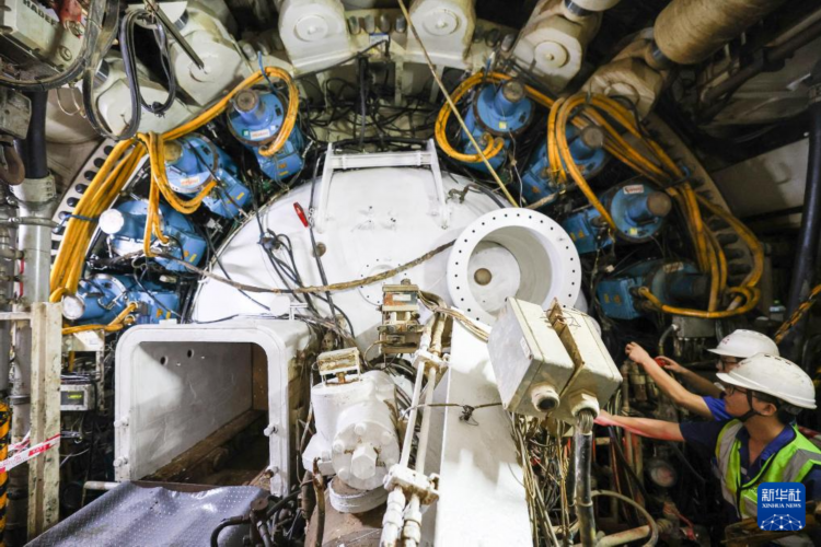 3月26日,中铁十四局施工人员检查开挖直径达14.57米的“永平号”盾构机运行状态。