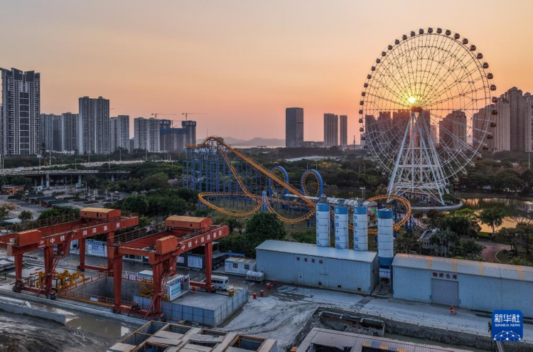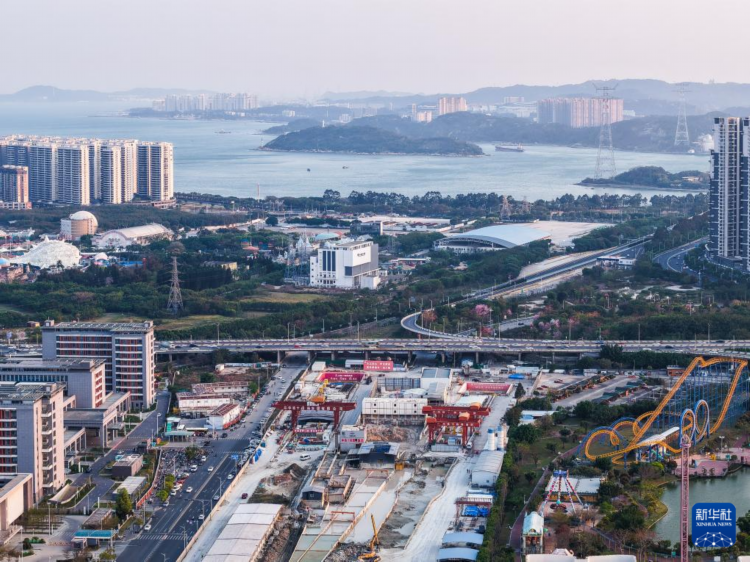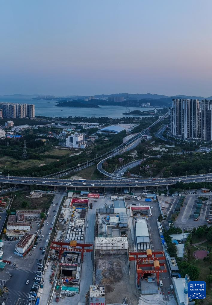 位于汕头湾北端的汕汕高铁汕头湾海底隧道施工现场(3月25日摄)。