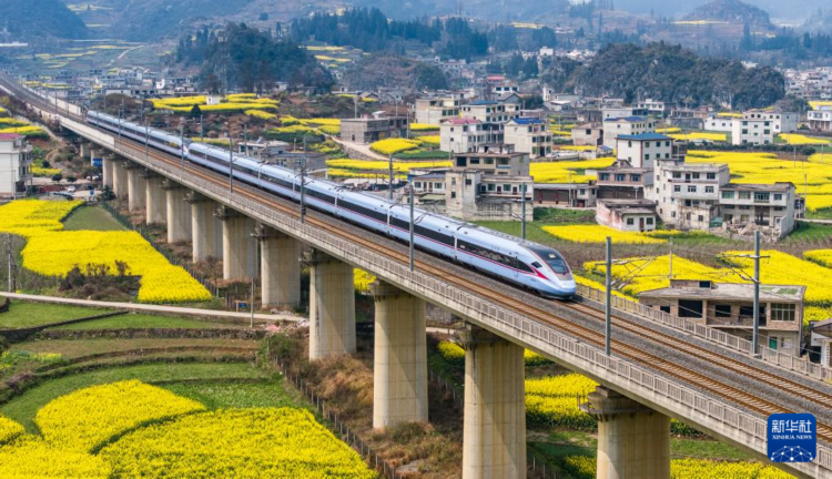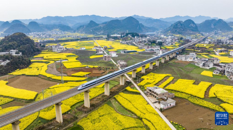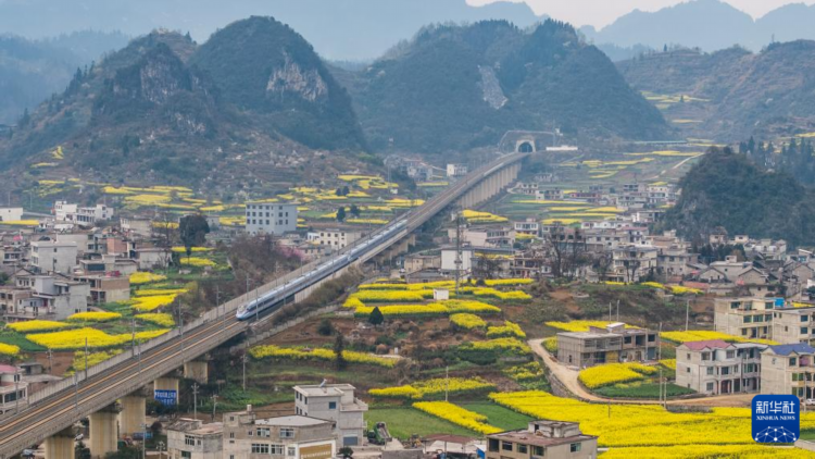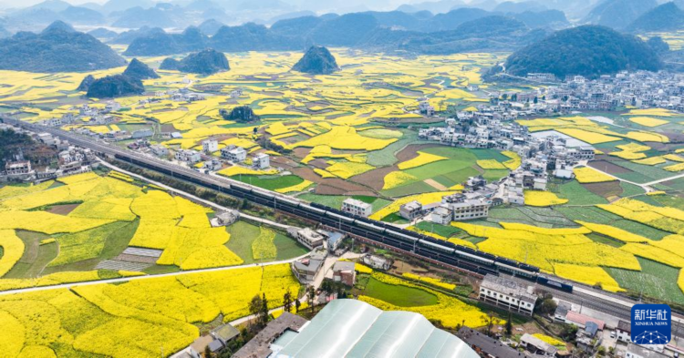 仲春时节,贵州省多地油菜花竞相绽放。一趟趟列车在油菜花海之中穿行,勾勒出黔贵大地朝气蓬勃的春日景象。