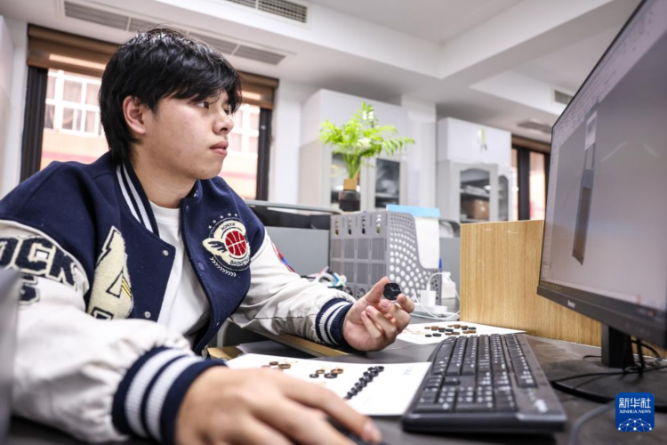 3月26日,永嘉县桥头镇浙江新城钮扣饰品有限公司员工在进行钮扣新产品的设计。
