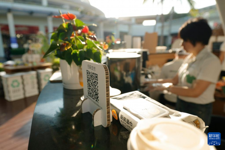 3月26日在博鳌亚洲论坛2025年年会会场外的休息区拍摄的支付码。支付码印在可再生纸制作的纸板上。