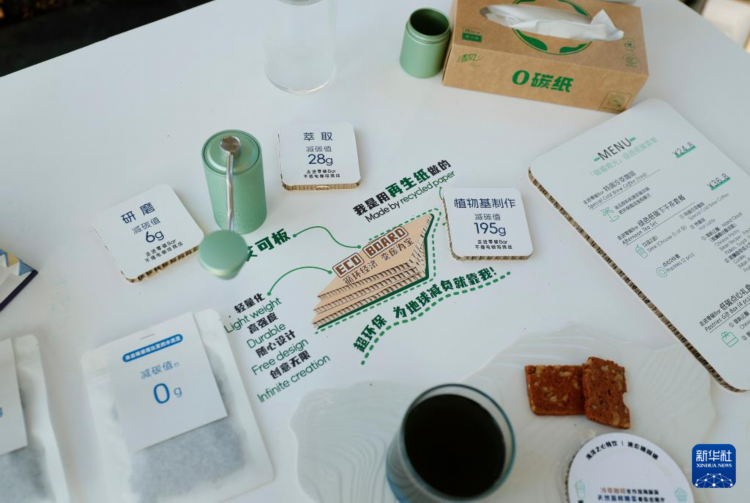 3月26日在博鳌亚洲论坛2025年年会会场外的休息区拍摄的一个桌面上的“零碳”信息。