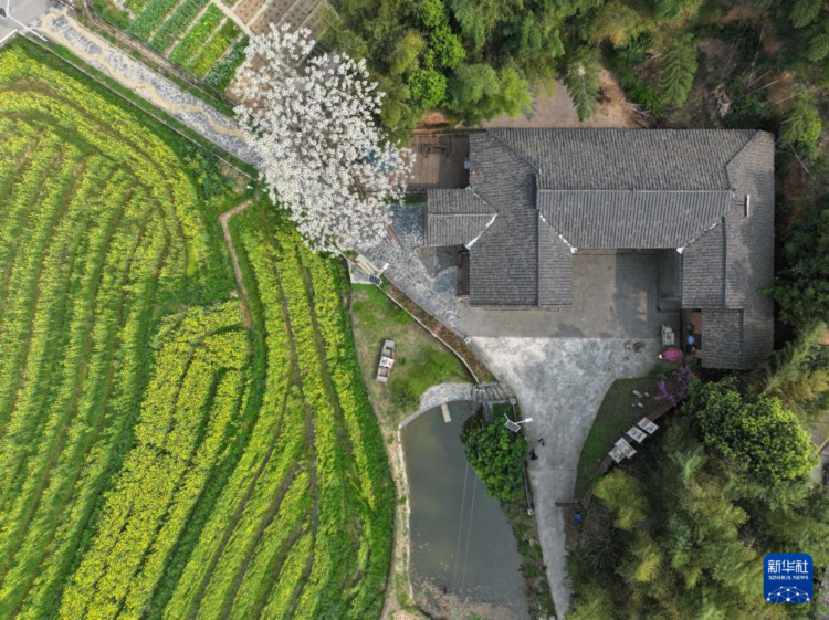 这是3月27日在长沙市望城区茶亭镇拍摄的一家供游客茶歇的小店(无人机照片)。