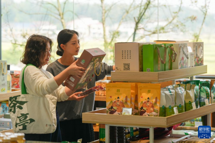 3月27日,游客在长沙市望城区茶亭镇的游客服务中心挑选农产品。