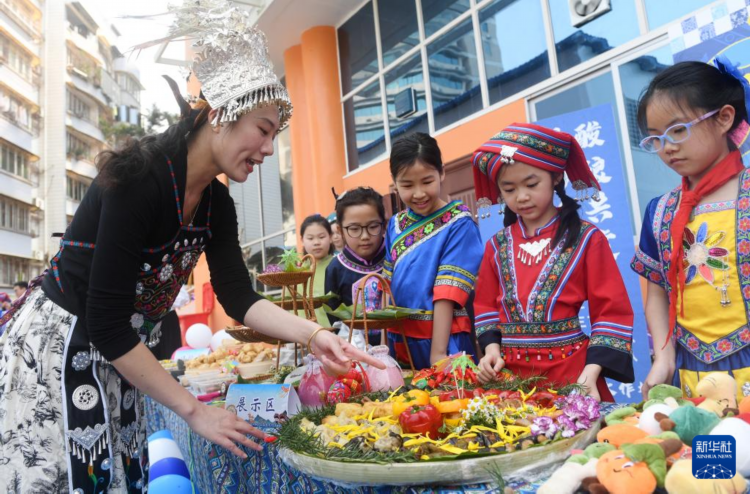 当日,广西南宁市滨湖路小学举办“石榴花开三月三 籽籽同心向未来”活动,通过唱歌、跳舞、美食展示等丰富多彩的活动,迎接传统节日“三月三”的到来。
