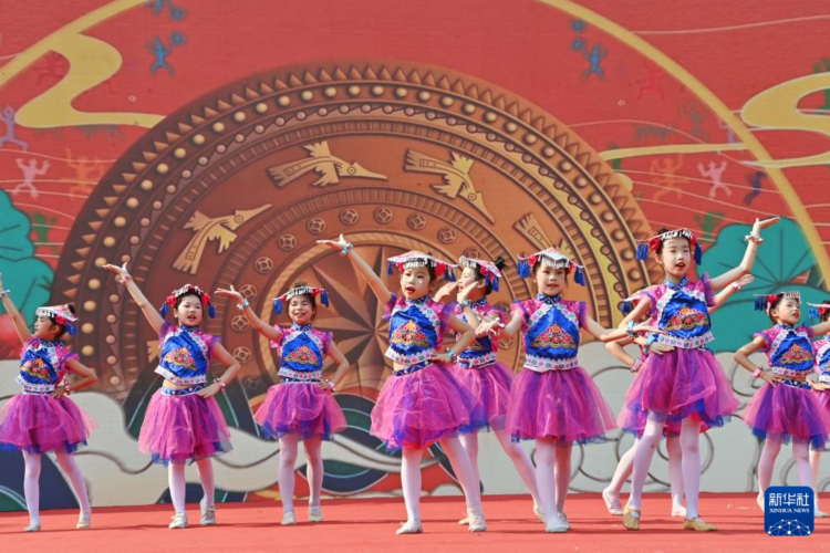 当日,广西南宁市民族大道东段小学举行2025年“铸牢中华民族共同体意识”主题活动暨“广西三月三”民族艺术节,孩子们以多种方式喜迎佳节。
