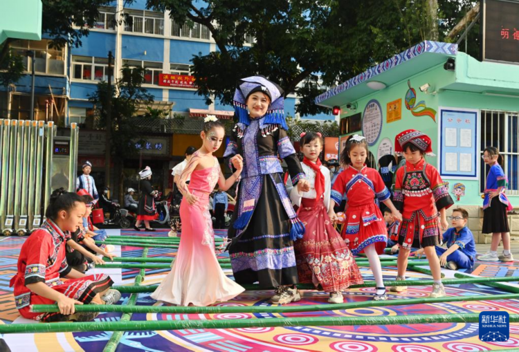 当日,广西南宁市民族大道东段小学举行2025年“铸牢中华民族共同体意识”主题活动暨“广西三月三”民族艺术节,孩子们以多种方式喜迎佳节。