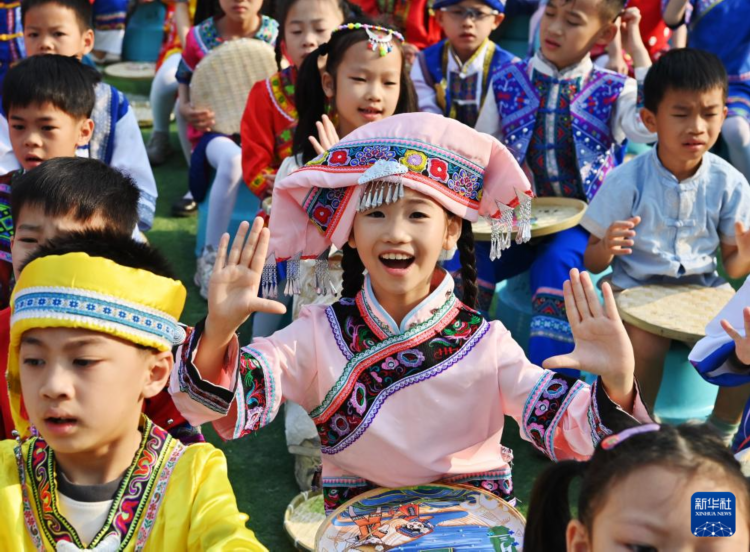 当日,广西南宁市民族大道东段小学举行2025年“铸牢中华民族共同体意识”主题活动暨“广西三月三”民族艺术节,孩子们以多种方式喜迎佳节。