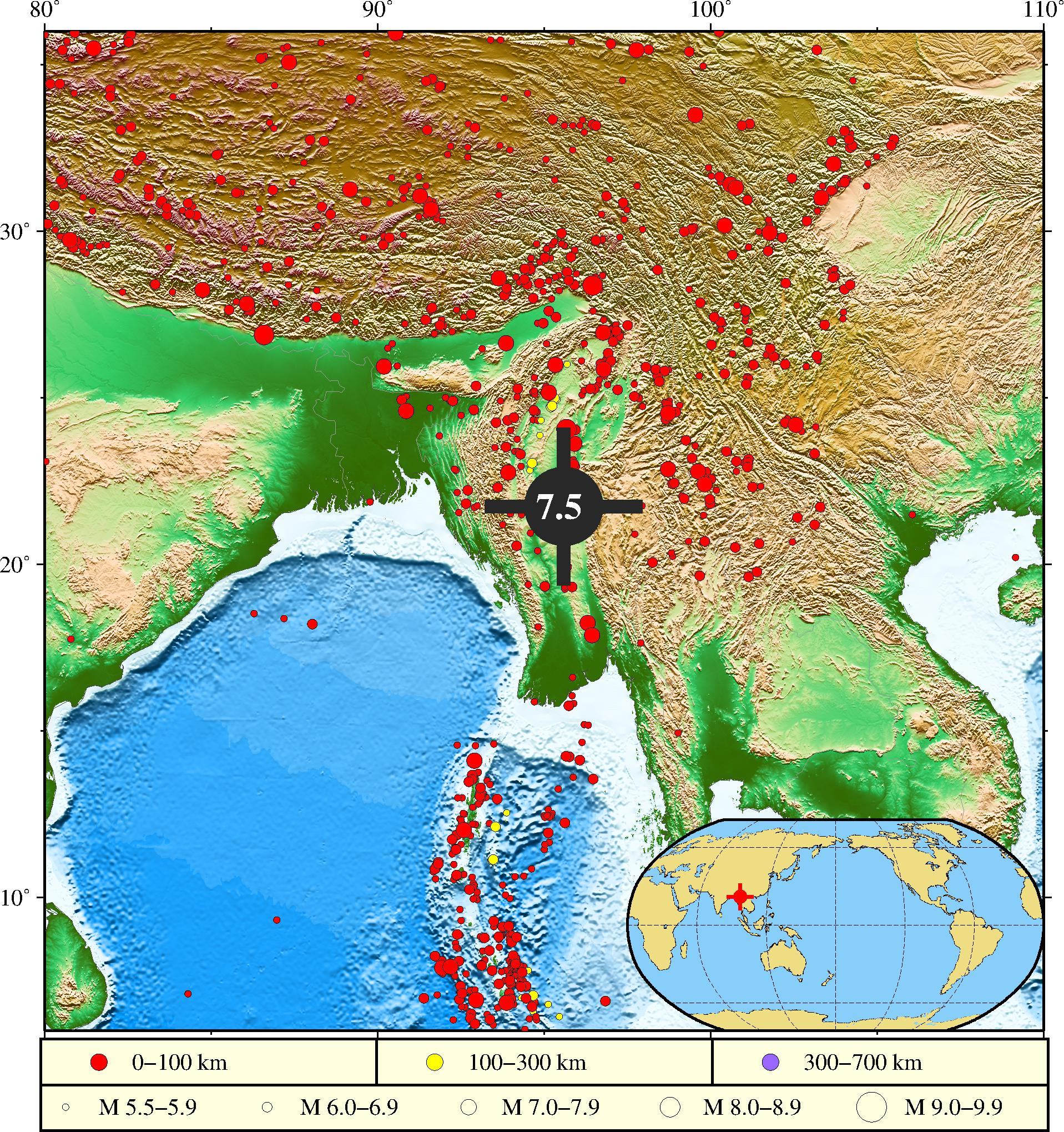 中国地震台网正式测定:3月28日14时20分在缅甸(北纬21.85度,东经95.95度)发生7.9级地震,震源深度30千米。缅甸最大城市仰光震感强烈。