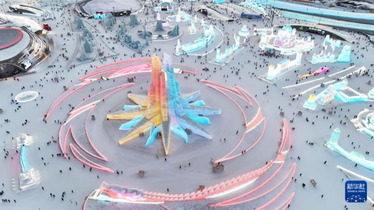 2月25日拍摄的哈尔滨冰雪大世界园区(无人机照片)。