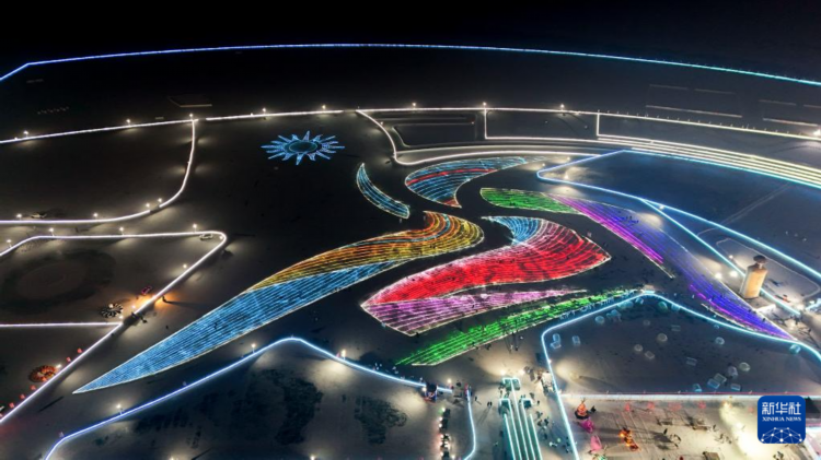 1月26日在松花江哈尔滨段江面上拍摄的哈尔滨松花江冰雪嘉年华(无人机照片)。