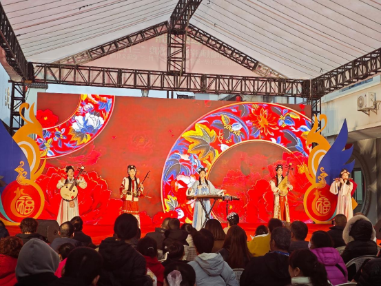 不仅是集市的丰富体验,现场还为大家带来传统文化的视听盛宴。在大舞台,展演精彩纷呈:民俗舞蹈《十二婆姐送平安》、畲族舞蹈《畲韵》与藏族舞蹈《雪域卓玛》展现浓厚的民族风情;川剧变脸与国潮民乐《云宫迅音》碰撞出传统与现代的艺术火花;闽剧《贻顺哥烛蒂》片段则让观众领略福州本土戏曲的深厚底蕴。