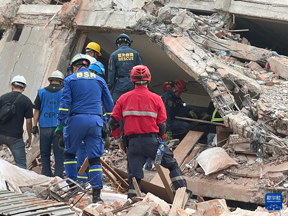 3月31日,中方救援人员在缅甸曼德勒开展救援。新华社记者 蒋超 摄