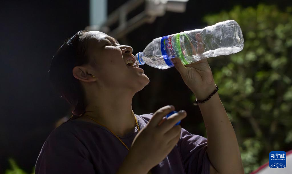 3月31日,在缅甸曼德勒,一名女子大口喝水。