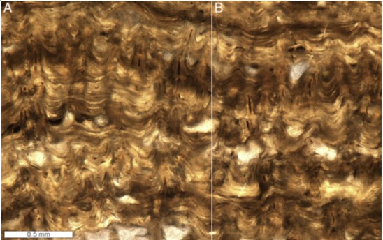 嫘祖冠毛层孔海绵化石纵切面。(中国科学院南京地质古生物研究所供图)
