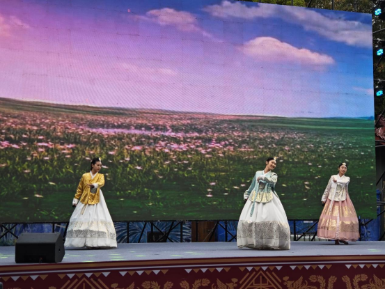 朝鲜族经典歌曲《阿里郎》,藏族歌手演唱的藏族歌曲《卓姆仁庆岗》,蒙古语、维吾尔语、汉语歌曲串烧《中国》接连演绎,富有情感和节奏的曲调,让大家沉浸在各民族的艺术魅力之中。