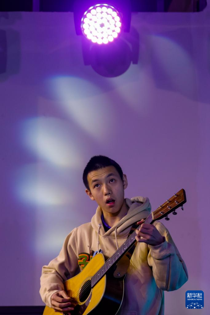 “知了小乐团”在成都市天府红购物中心演出(3月30日摄)。