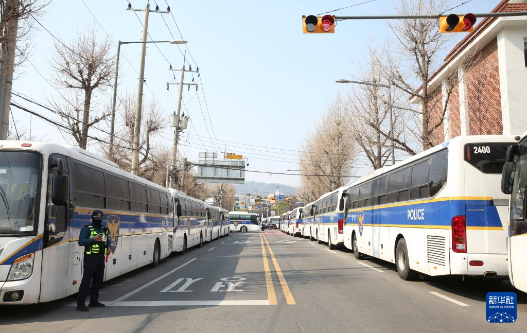 4月1日,在韩国首尔,警察在韩国宪法法院门前严阵以待。