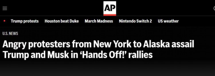 这是5日全美各地抗议示威者的呼声。当天,人们走上街头,有的聚集在当地议会大厦前。他们手举“别碰我们的民主”“别动我们的社保”等标语,表达对特朗普和埃隆·马斯克领导的政府效率部在政府裁员、经济、移民和人权等方面政策的愤怒情绪。