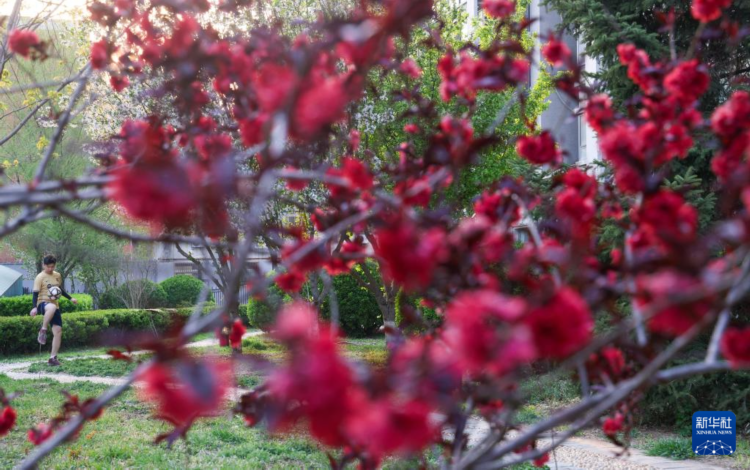 4月6日,人们在北京望京海棠花溪畔休闲。