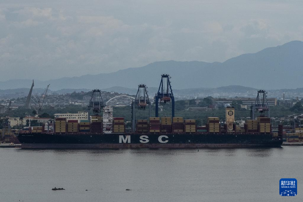 4月3日,集装箱货船停靠在巴西里约热内卢的一处港口。