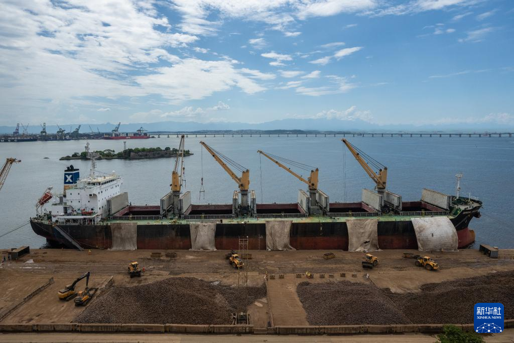 4月3日,货船在巴西里约热内卢的一处港口装载铁矿石。