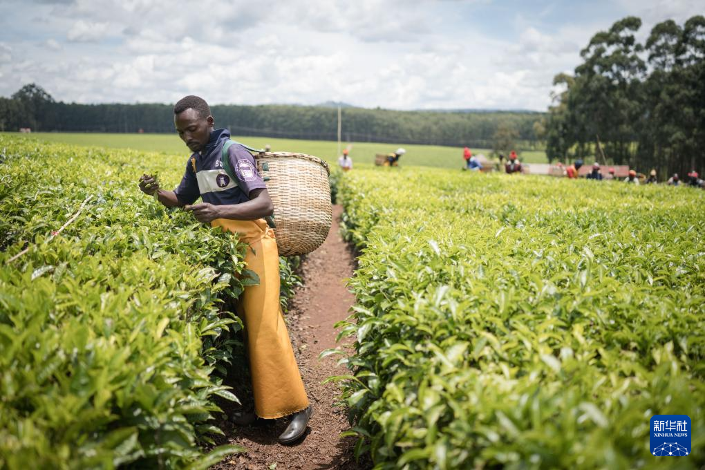 4月4日,农民在肯尼亚凯里乔的茶田采茶。