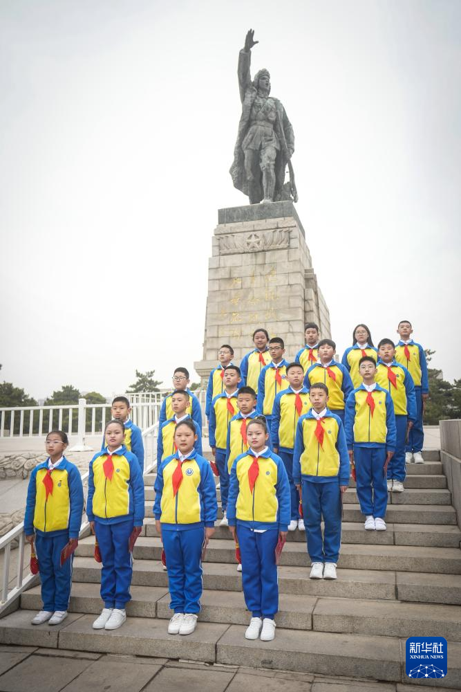4月1日,锦州市古塔区石油小学的学生在辽沈战役纪念馆进行纪念活动。