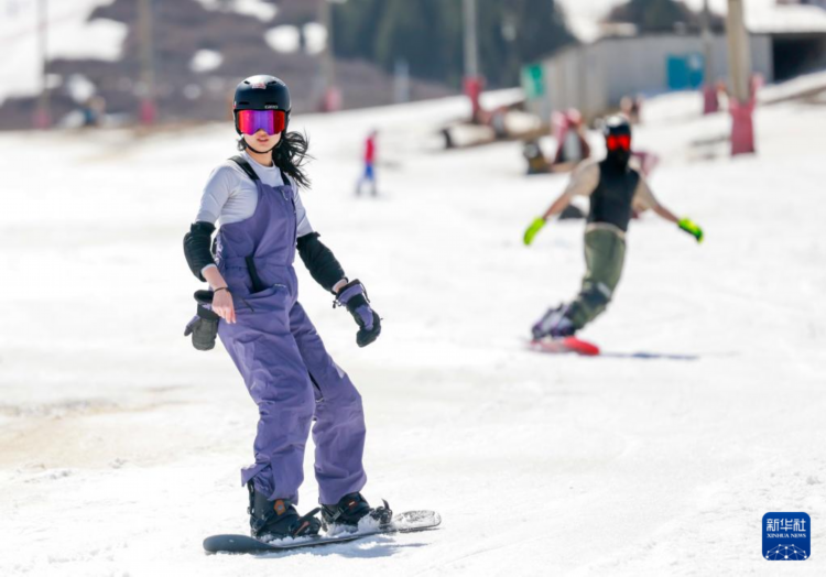 这是游客在新疆丝绸之路山地度假区滑雪(2025年4月5日摄)。