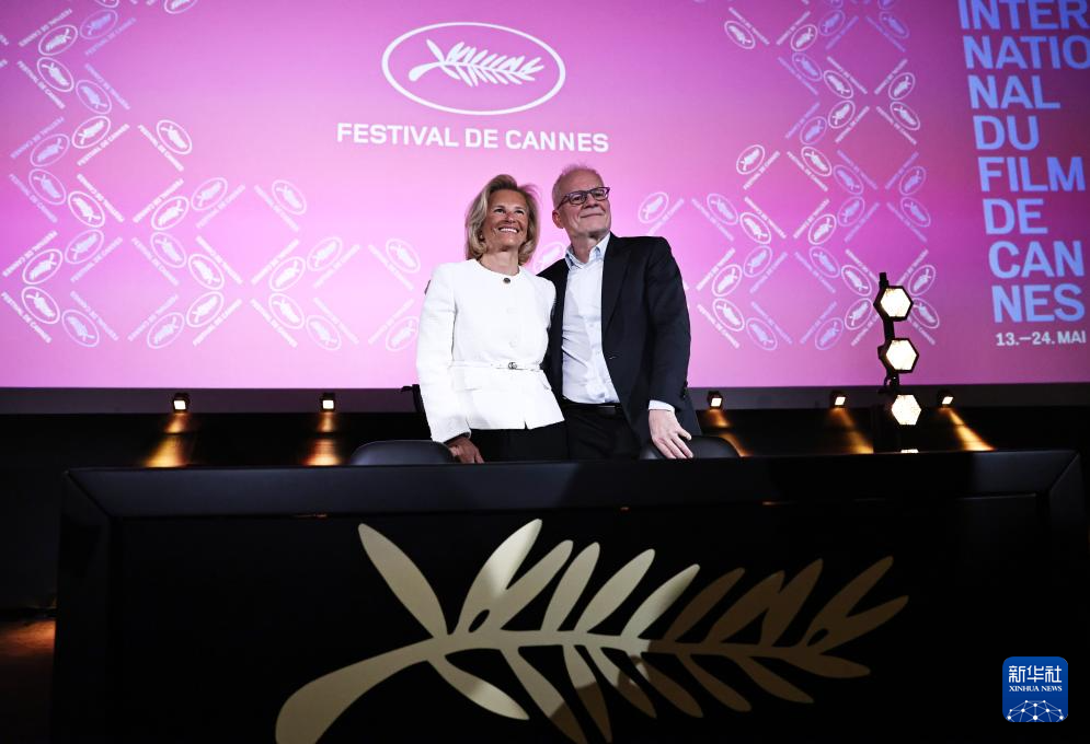 4月10日,戛纳电影节主席伊丽丝·克诺布洛赫(左)与戛纳电影节艺术总监蒂埃里·弗雷莫出席在法国巴黎举行的新闻发布会。