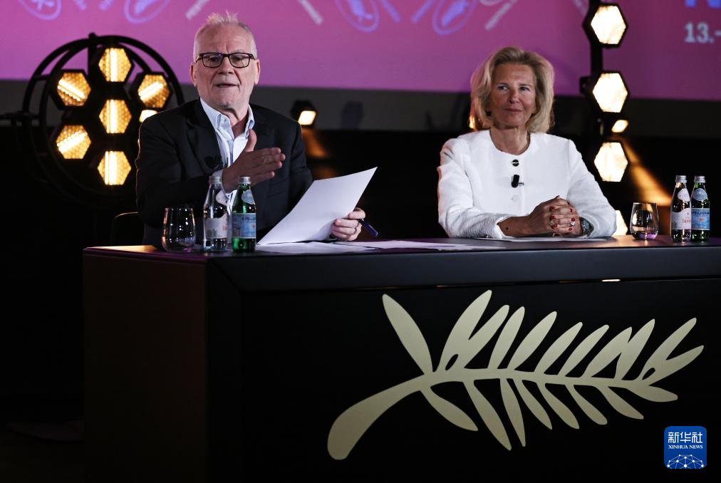 4月10日,戛纳电影节主席伊丽丝·克诺布洛赫(右)与戛纳电影节艺术总监蒂埃里·弗雷莫出席在法国巴黎举行的新闻发布会。