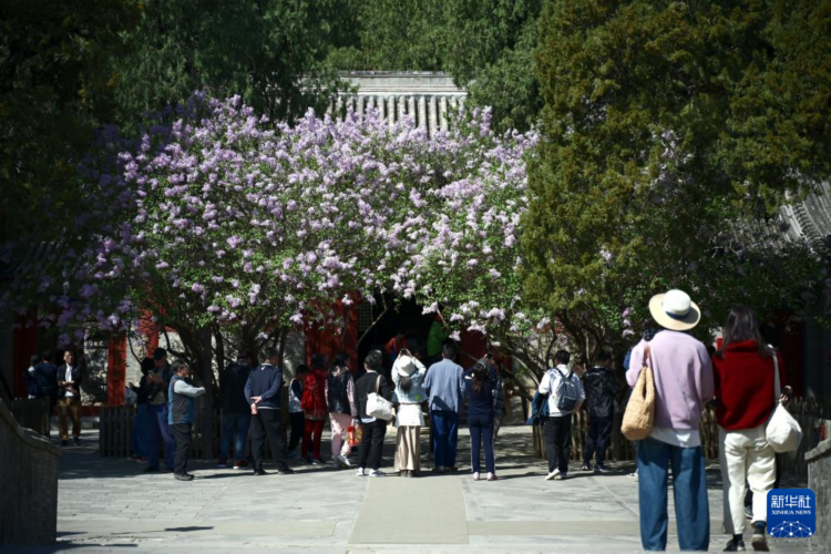 4月6日,游客在北京大觉寺拍摄盛开的鲜花。