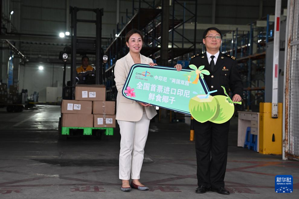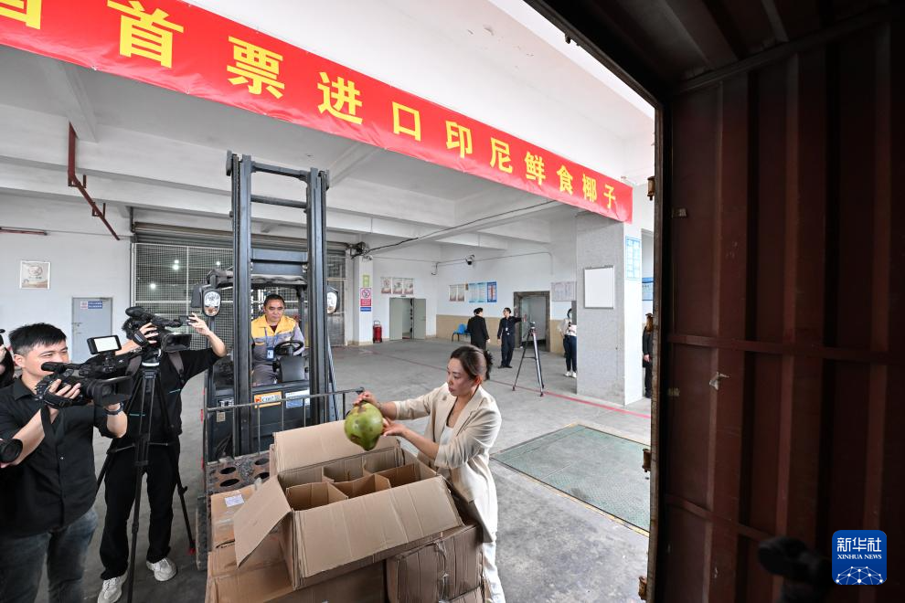 当日,一批重200千克的印尼鲜食椰子顺利抵达福州长乐国际机场。这是全国首票进口的印尼青椰,也是今年中印尼两国建交75周年深化经贸合作取得的重要成果。
