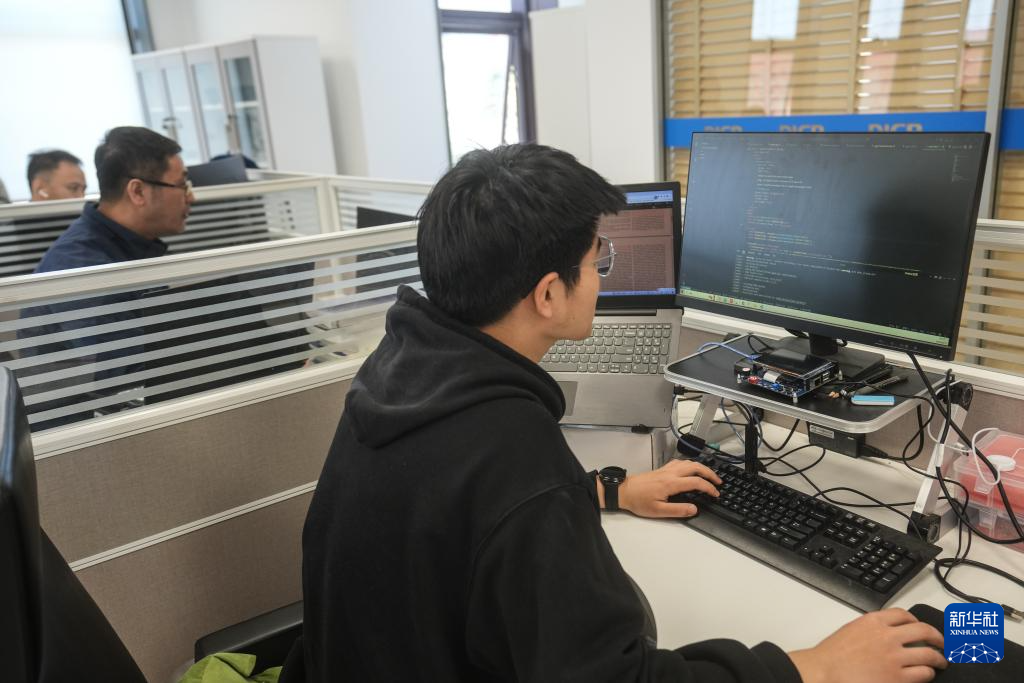 4月11日,中国科学院大连化学物理研究所陈忠伟团队的科研人员在进行系统的编程工作。