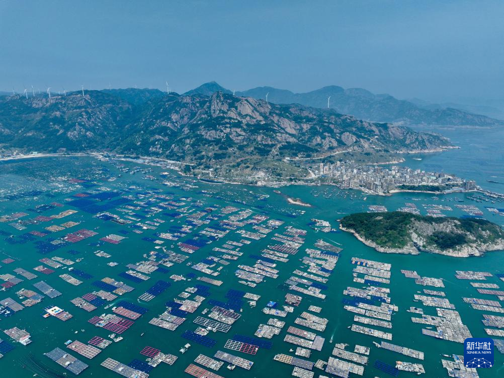 这是4月11日拍摄的福建省福州市连江县黄岐半岛周边海域鲍鱼养殖区(无人机照片)。