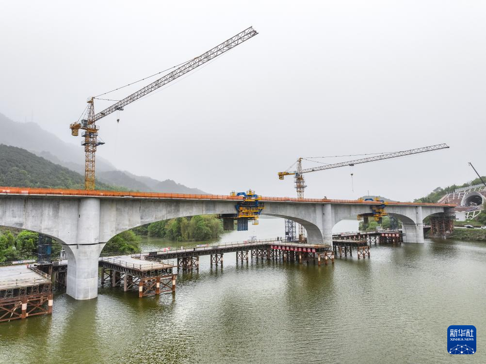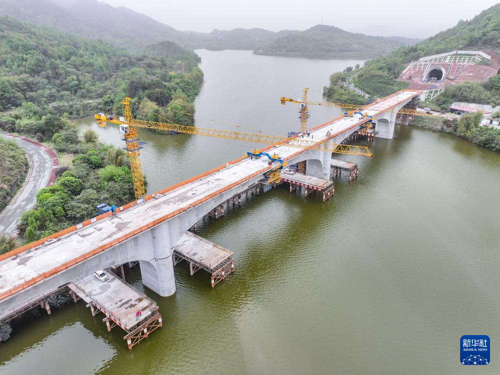 这是4月12日拍摄的合龙后的成渝中线高铁玄天湖双线大桥。