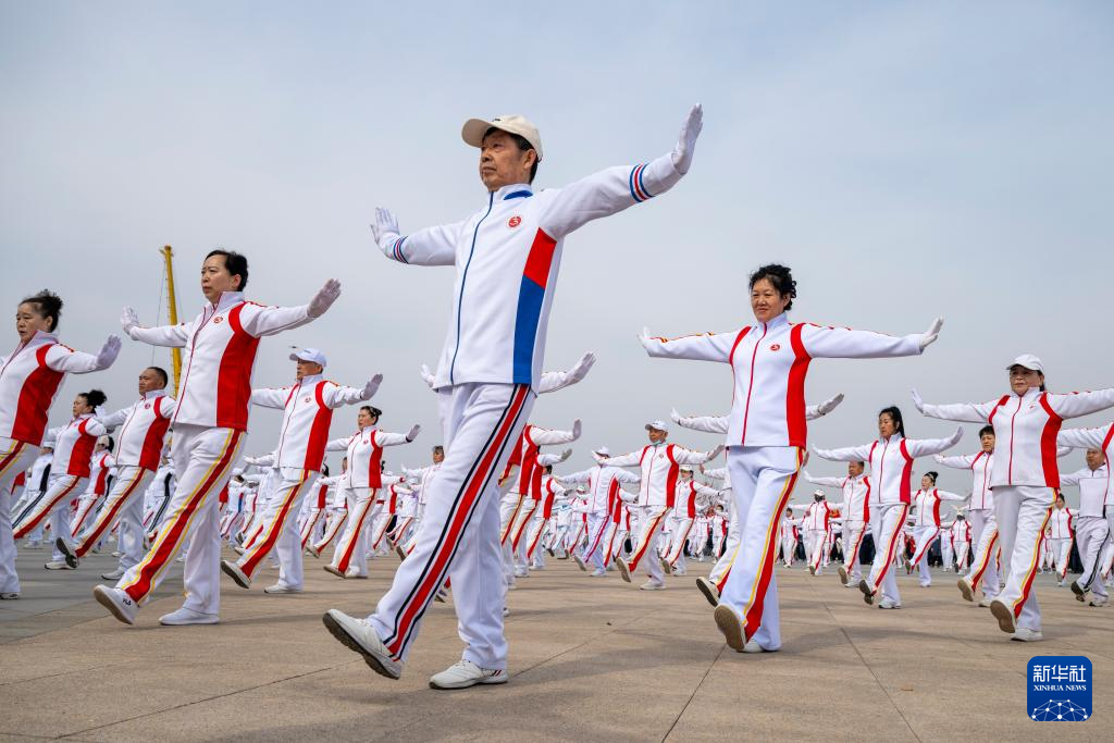 4月12日,市民在佳木斯市“喊江节”主会场进行广场舞表演。