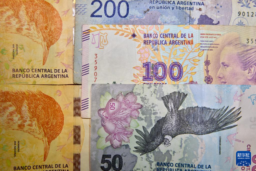 这是4月11日在阿根廷首都布宜诺斯艾利斯拍摄的阿根廷比索。