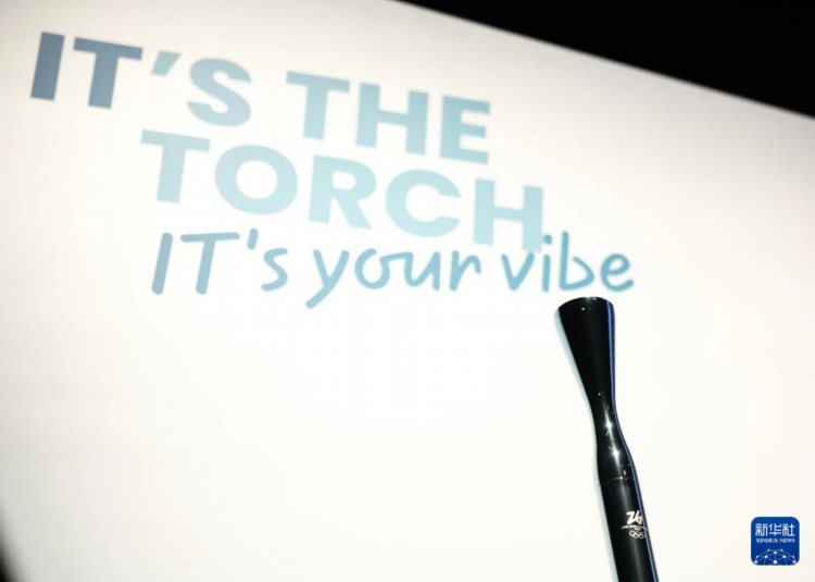 这是4月14日在米兰发布活动现场拍摄的2026年米兰-科尔蒂纳丹佩佐冬奥会火炬。新华社记者 李京 摄