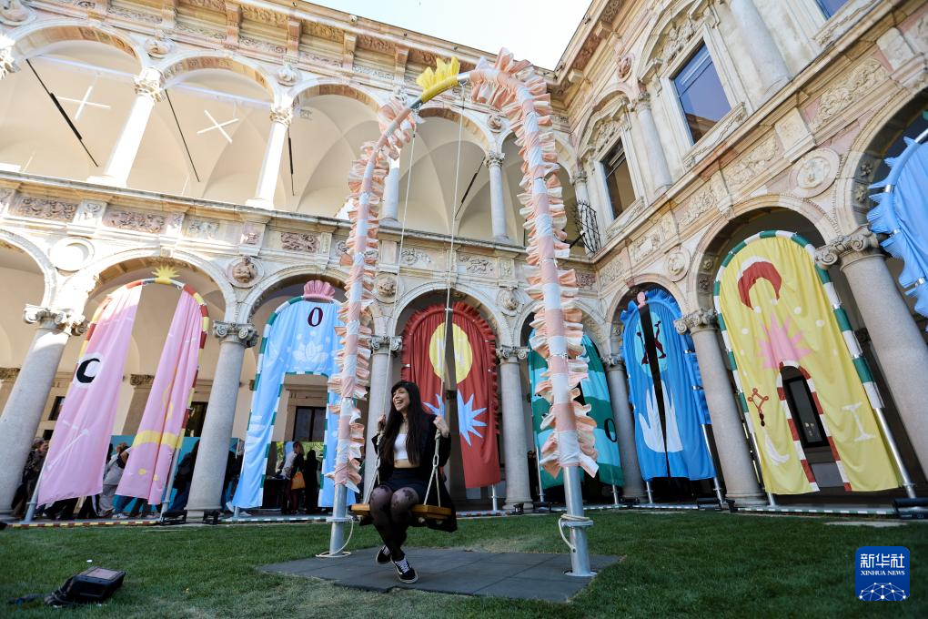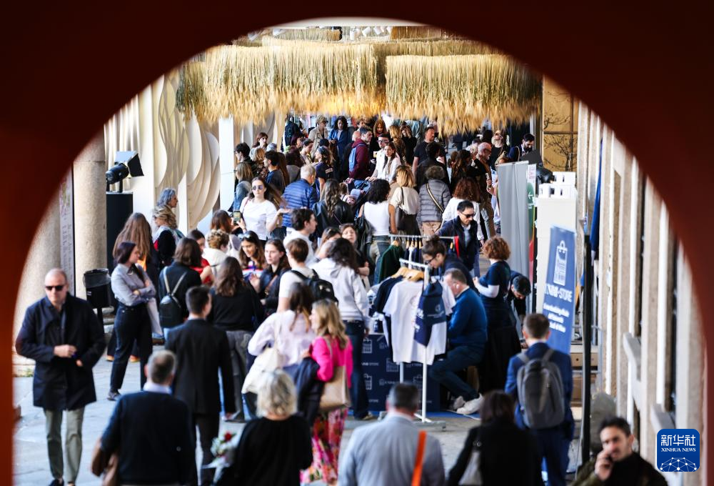 4月11日,在意大利米兰,人们在2025米兰设计周米兰大学展区参观。 2025米兰设计周4月7日至13日在意大利米兰举行。 新华社记者 李京 摄