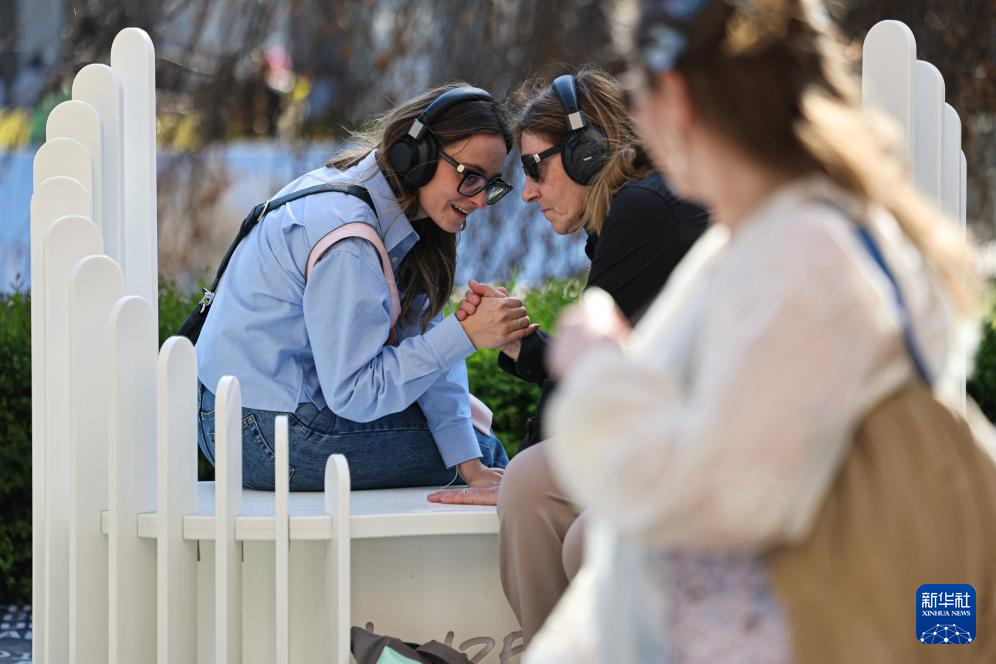 4月11日,在意大利米兰,人们在2025米兰设计周米兰大学展区体验展品。 2025米兰设计周4月7日至13日在意大利米兰举行。 新华社记者 李京 摄