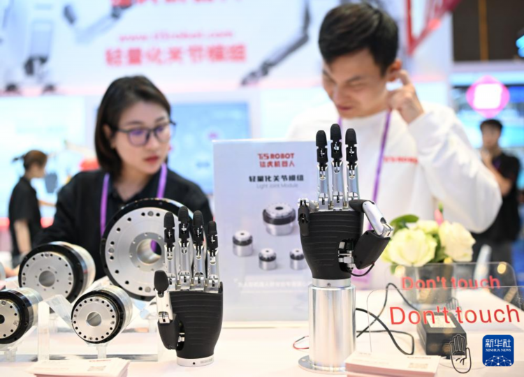 这是4月15日在第137届广交会服务机器人专区拍摄的机器人灵巧手展品。