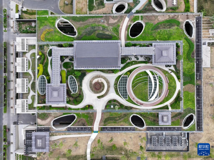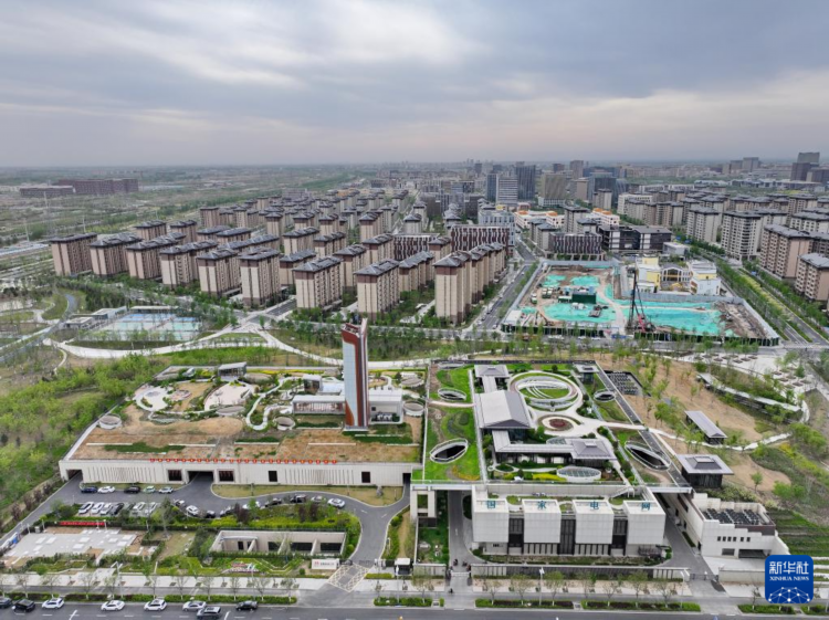 这是雄安新区剧村220千伏变电站(4月15日摄,无人机照片)。该变电站屋顶覆土建设成公园,形成与城市融合共生的景观。