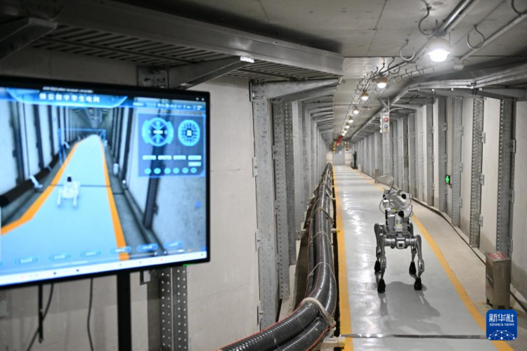 4月15日,四足巡检机器人在雄安新区雄东电缆隧道内巡检。