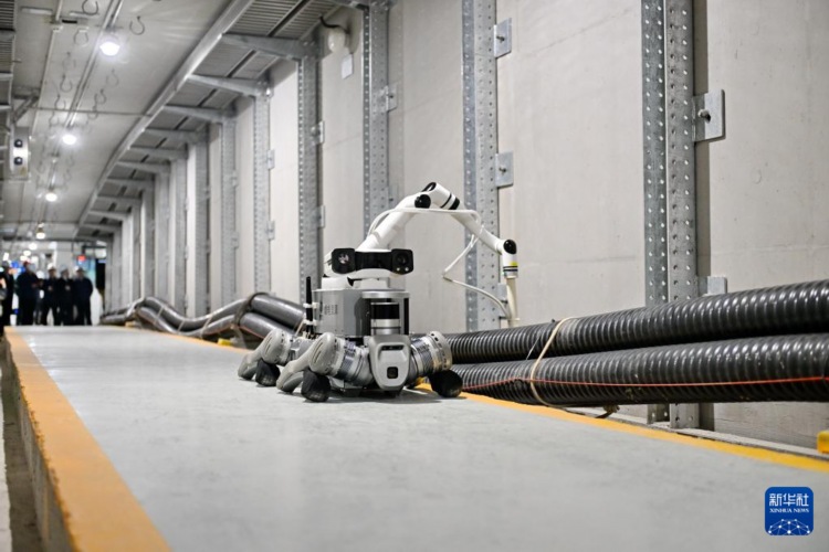 4月15日,四足巡检机器人在雄安新区雄东电缆隧道内巡检。