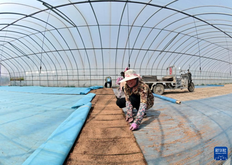 随着气温逐渐升高,河北省唐山市曹妃甸区农民抢抓农时进行水稻育秧等工作,田间地头一派繁忙景象。