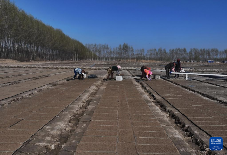 随着气温逐渐升高,河北省唐山市曹妃甸区农民抢抓农时进行水稻育秧等工作,田间地头一派繁忙景象。