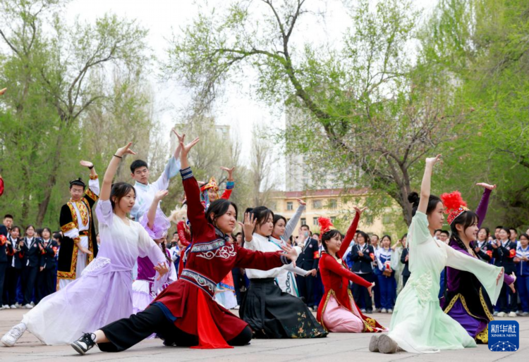 4月16日,学生在读书日系列活动中展示将舞蹈与诵读相结合。